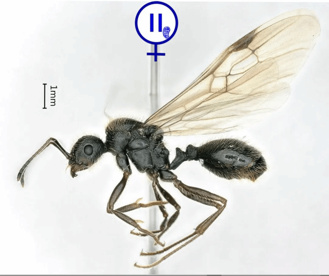 为了验证这一点,研究人员将这些雄蚁全部移除,并将蚁群隔绝在人工环境中,避免有外来雄蚁混入。一年之后,实验结果令人震惊:巢内依旧出现了两种雄蚁。换句话说,伊比利亚收获蚁的蚁后竟然能够在同一巢穴里,生下属于两个物种的雄蚁!