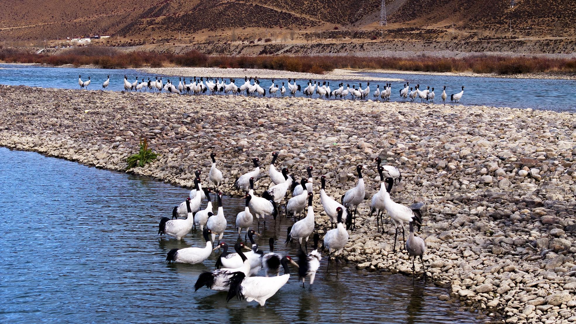 11月21日,西藏墨竹工卡县,1000多只黑颈鹤从藏北草原迁徙于此越冬。洛 克 摄