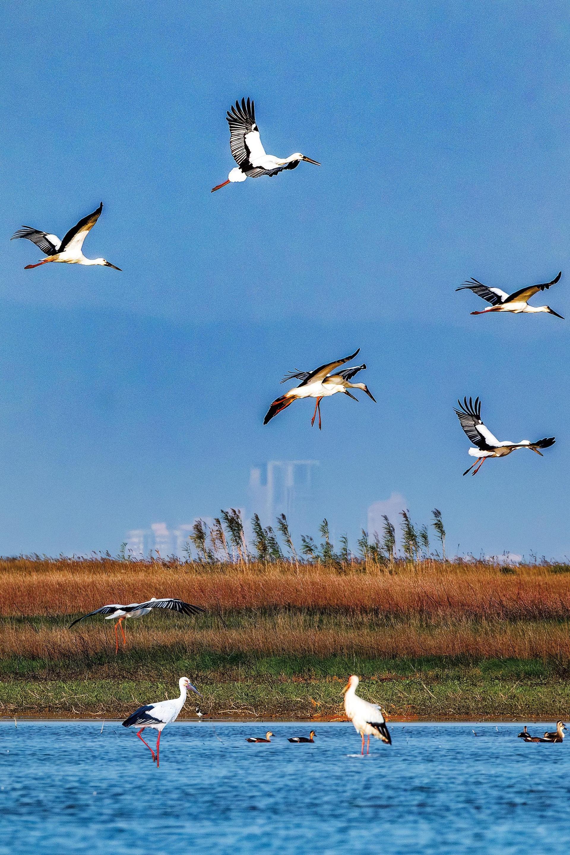 或许是基于这样的导航系统,它们才能在飞行中精准地找到补给地,到达终点站。在江西,休养生息中的鄱阳湖,以最低的水位摆出了丰富的鱼虾盛宴,迎接近60万只候鸟“回家”。在这条东亚—澳大利西亚候鸟迁徙的重要线路上,全球约95%以上的白鹤、80%以上的东方白鹳、70%以上的白枕鹤来此越冬。