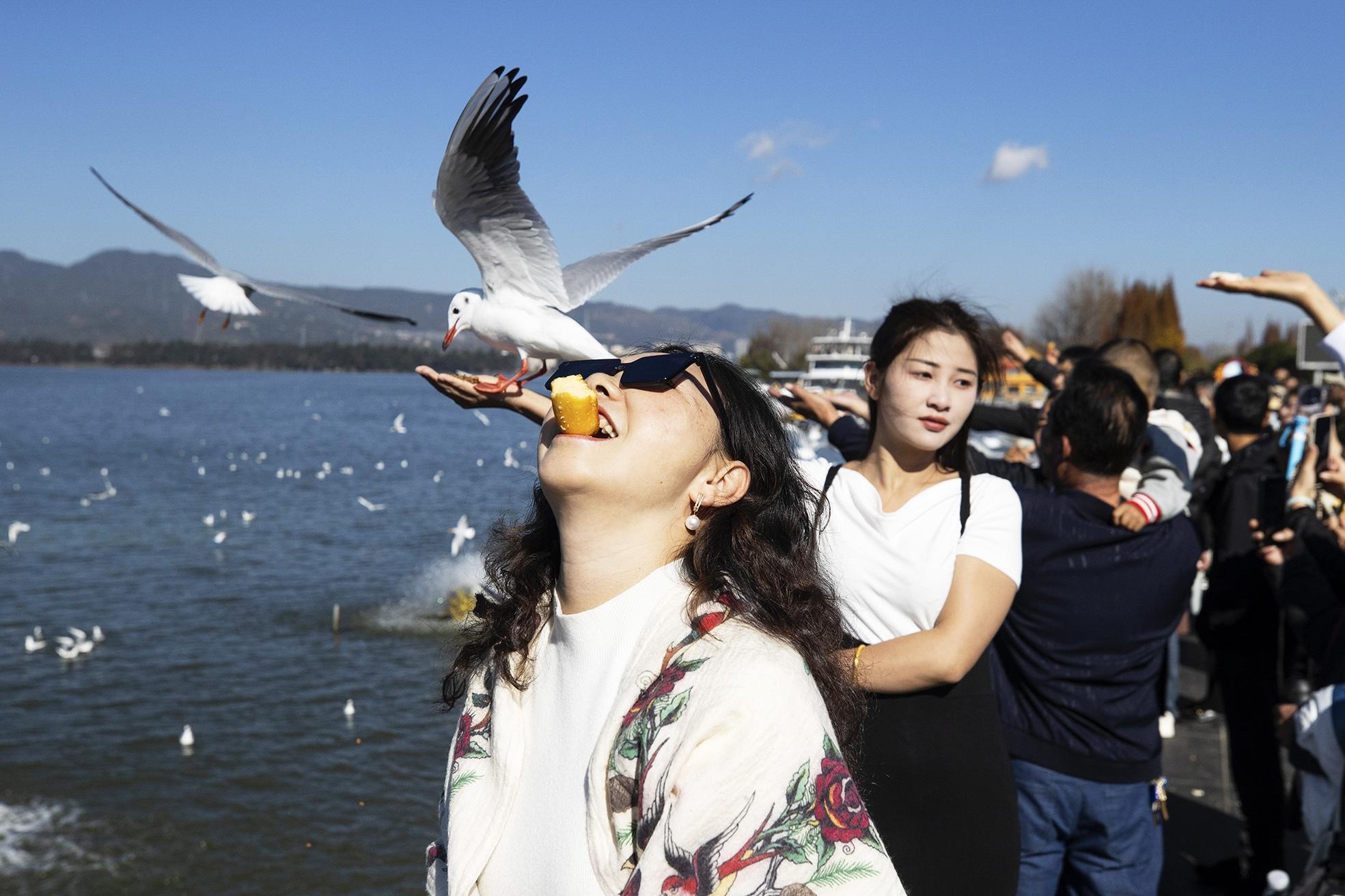 12月2日,云南昆明,红嘴鸥在滇池上空盘旋。孟祝斌 摄