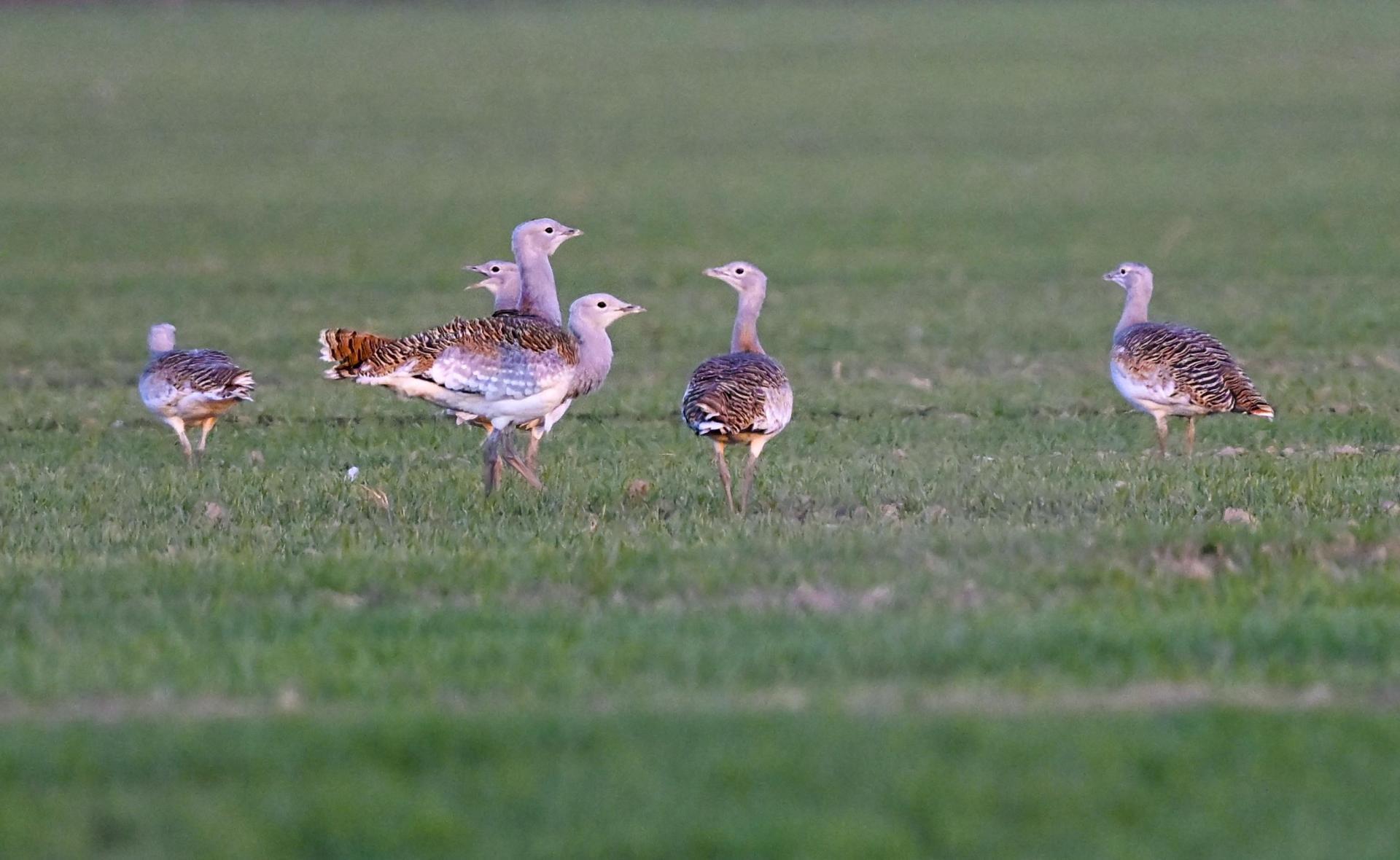 12月1日,河北雄安新区安新县境内,国家一级保护动物大鸨在田野间栖息觅食。张学农 摄