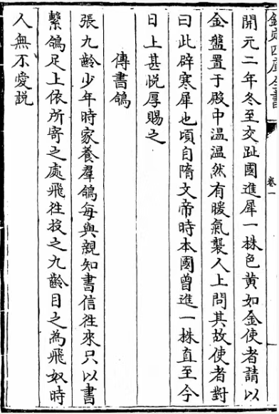 据《开元天宝遗事》卷上《传书鸽》中记载:“张九龄少年时,家养群鸽。每与亲知书信往来,只以书系鸽足上,依所寄之处,飞往投之。九龄目之为「飞奴」,时人无不爱说”。由此可见,早在唐代,便有驯鸽通信,飞奴传书了。《宋朝事实类苑》卷六一记载:“今人驯养家鸽通信,皆非虚言也,携至外数千里,纵之,辄能还家。蜀人以事至京师者,以鸽寄书,不旬日皆得达,及贾人舶船浮海,亦以鸽通信”。信鸽作为“空中驿使”,是古代通讯中不可或缺的一环。