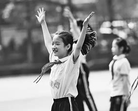 日前,江西省宜春市宜阳学校操场上,学生们复习线上课堂学习的动作,进行适当的体育锻炼。刘继刚摄/光明图片