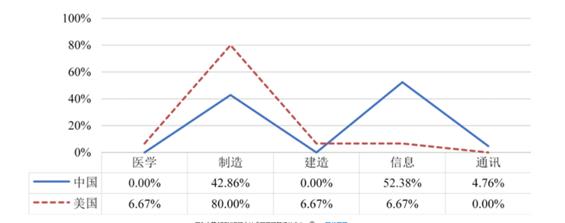 最后,中美STEM课程均强调问题解决,中国课程的工程主题较为集中,美国则更显多元。我国2017年颁布的《小学科学课程标准》明确指出工程的定义,即人类为了实现自己的需要,对已有的物质材料和生活环境加以系统的开发、生产、加工、建造等,这便是工程,工程的核心是创造。创造意味着寻找问题解决的创新方案,中国STEM课程侧重利用编程知识进行创新和工程设计,美国侧重利用系统的工程设计思维和流程培养学生的系统思维和设计策略。从总体上看,两国所有和制造创造相关的STEM课程均以工程设计作为课程主题,在主题选择方面,中国倚重传感器等硬件设备制造智能电器设备,如制作电动雨刷器、求生呼救器等,主题偏物理科学,工程主题较为集中;美国则在生命与环境科学、地球科学、物质科学等工程设计领域均有涉猎,工程主题较为多样(图5)。